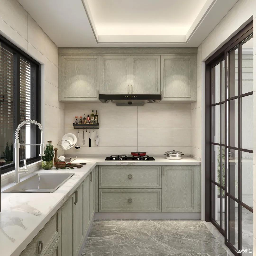▲室内的环形水晶吊灯,让空间明亮而高级,淡雅内敛的洛卡灰,在些许爱马仕橙的亮色点缀下,让空间色彩跳脱又灵动。飘窗设计,使光线毫无保留的散落空间,卧室通过自然光线与实木的洗礼,充满着温暖阳光的气息。